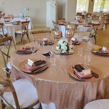 A Wide Variety Of Wedding Supplies, Tablecloths, Napkins, Décor Items & More for rent.